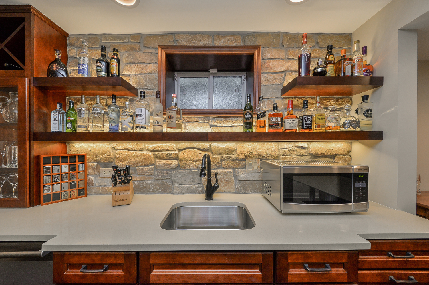 Today’s basement bars are more refined than the wet bars of the past. Homeowners want them to look like high-end kitchen features. Common elements include: