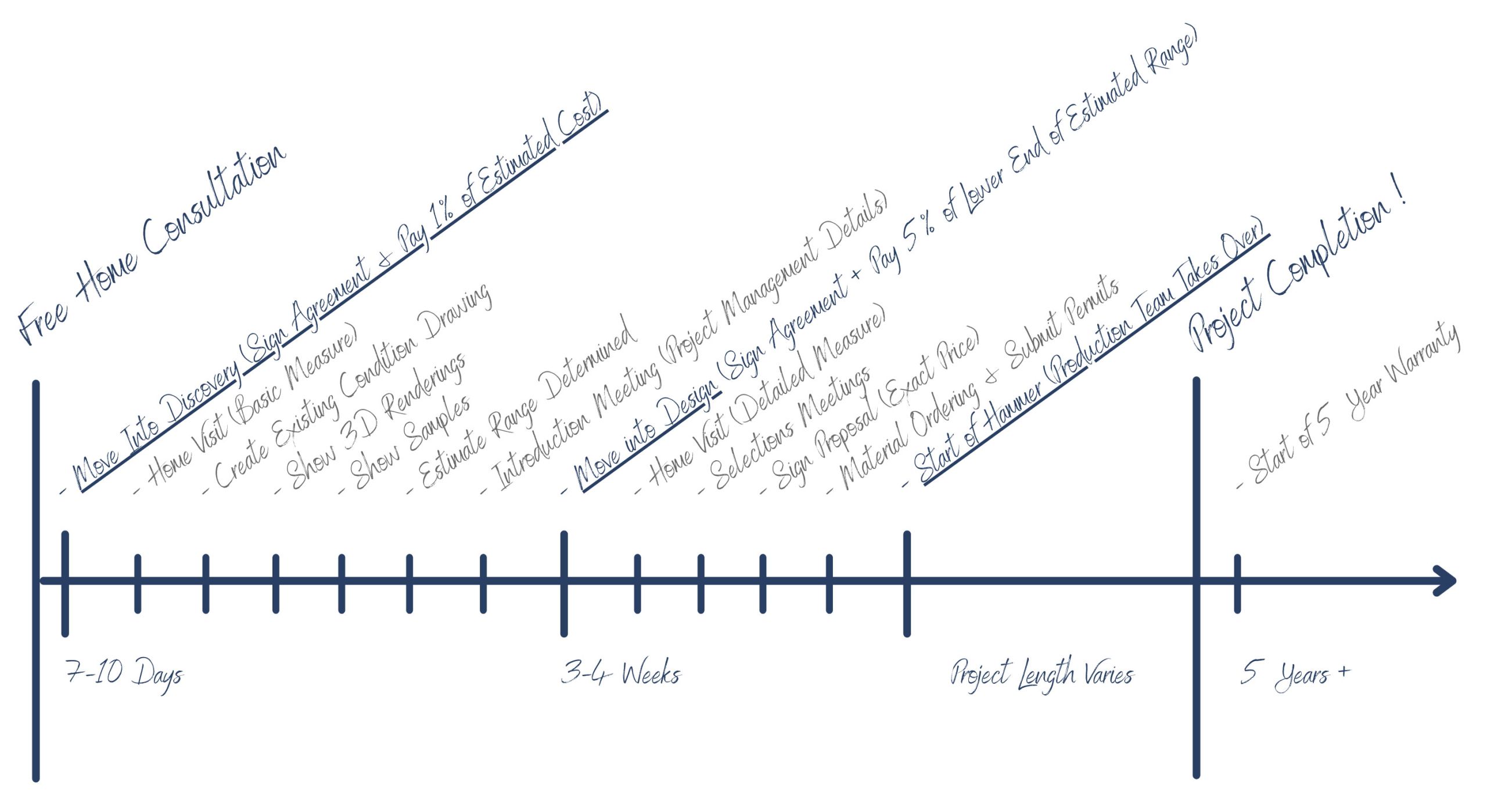 Initial meetings in the Discovery Phase will determine budget ranges based on your chosen “likes”.  When moving into the Design Phase, making actual selections that will be included in your final project allows us to gather the exact prices of your choices and put together a final Proposal before starting the ordering and permit process.